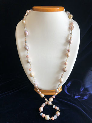 12mm x 13mm Fresh Water Pearl, Moonstone and Labradorite Necklace