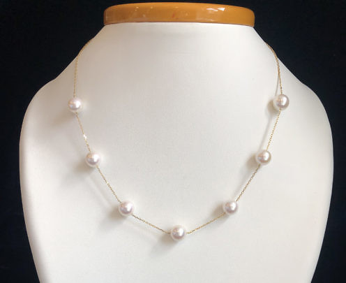 18K Yellow Gold Japanese Akoya Pearl “Tin Cup” Necklace
