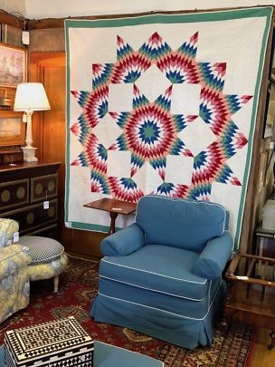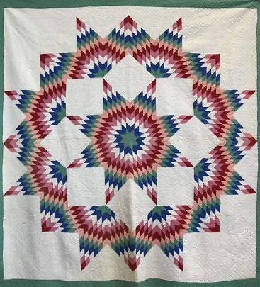 Colorful Broken Star Patchwork Quilt, 1930s
