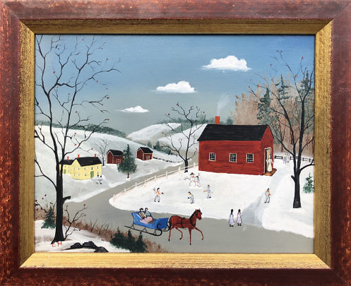 Charlie Munro Oil on Panel “Winter Sleigh Ride Scene”