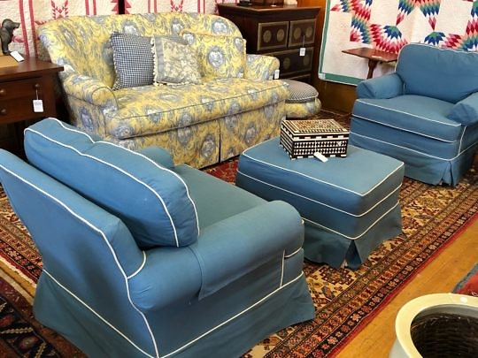 Pair of Nautical Upholstered Overstuffed Club Chairs