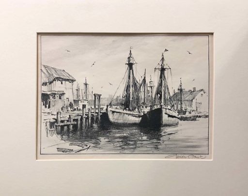 Maxwell Mays Gouache on Board “Fall River Harbor”
