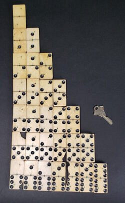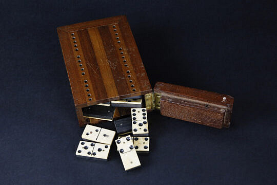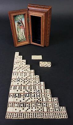 Bone and Ebony Dominos in Cribbage Board Box, 19th Century