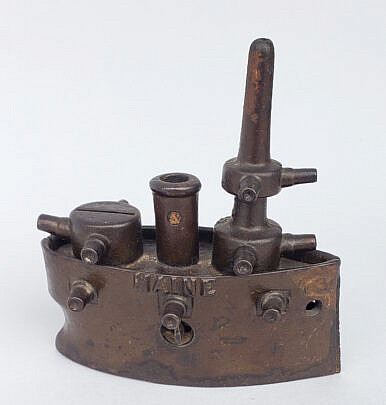 Antique Cast Iron Figural “Maine” Battleship Still Bank Toy, circa 1920s