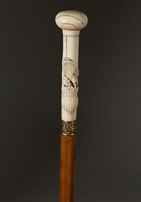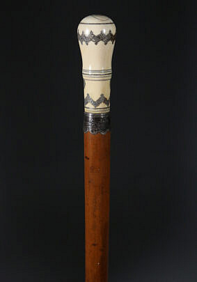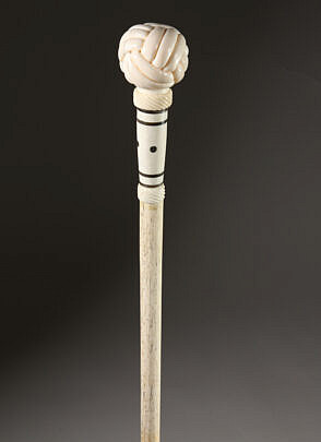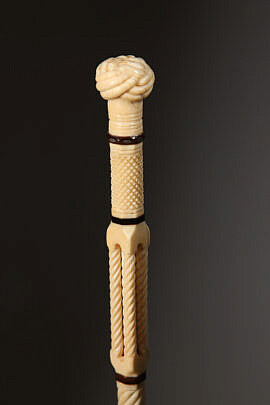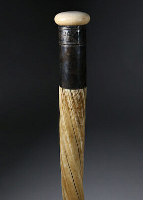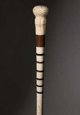 Whaleman Made Antique Whale Ivory Knob Walking Stick, 19th Century