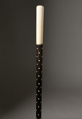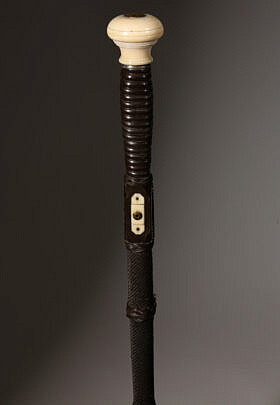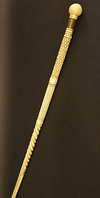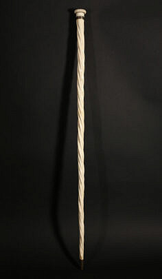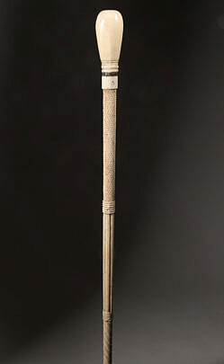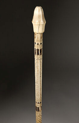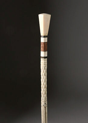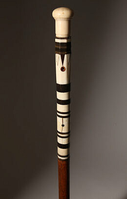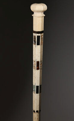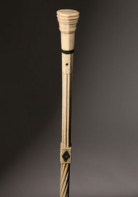 Exceedingly Rare Scrimshaw and Polychrome Whalebone Walking Stick, circa 1830s