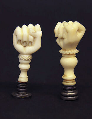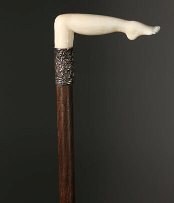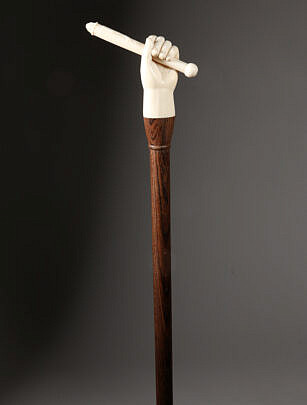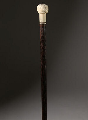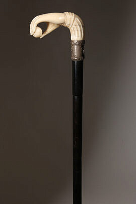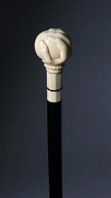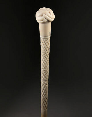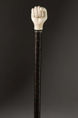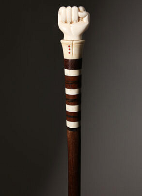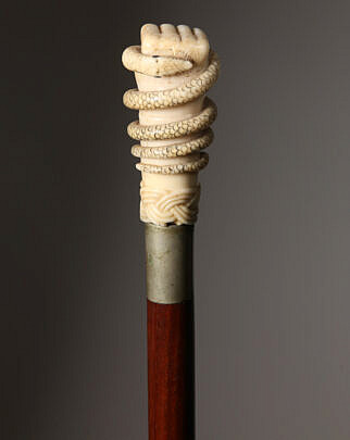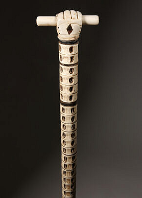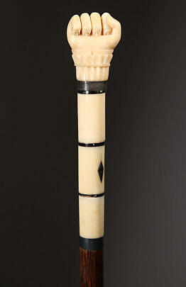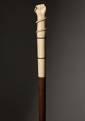 Whaleman Made Antique Whale Ivory Clenched Fist Walking Stick, 19th Century