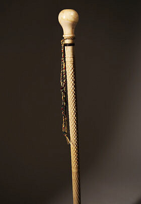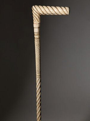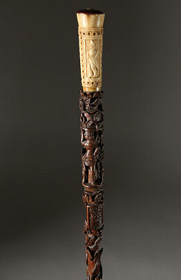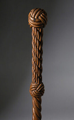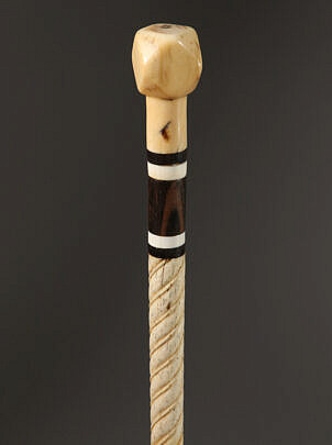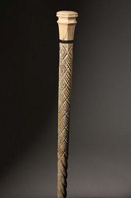 Whaleman Carved Wood Rope Walking Stick, 19th Century