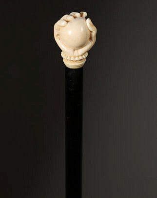 Whaleman Made Antique Whale Ivory Hand Grasping a Ball Walking Stick, 19th Century