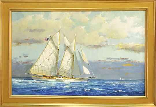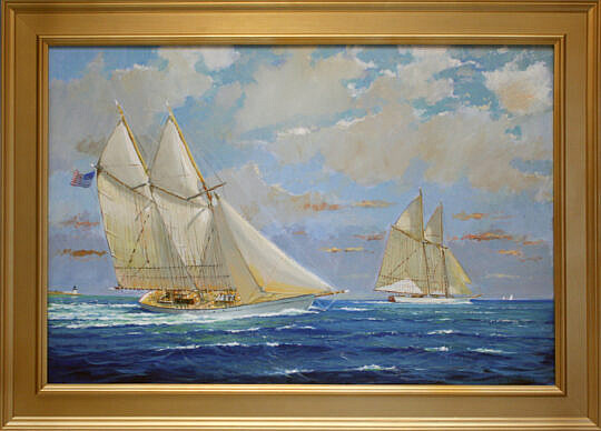William Lowe Oil on Canvas “Great Sailing Day – Departing Nantucket Harbor”