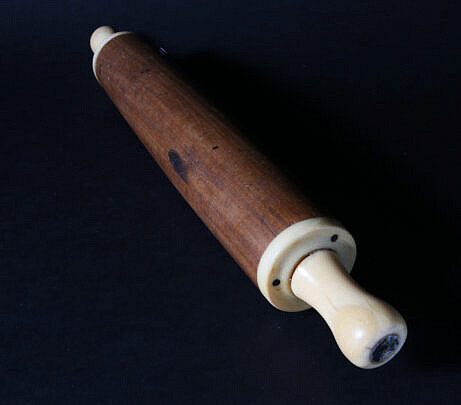 Whaleman Made Antique Whale Ivory and Wood Rolling Pin, mid 19th Century