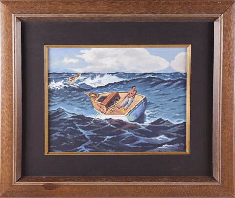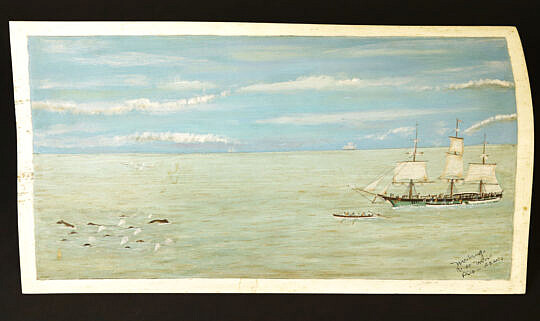 Louis H. Joy Folk Art Oil on Artist Board, “Whaling in the South Seas”