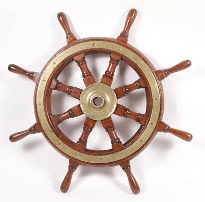 Eight Spoke Mahogany and Brass Captain’s Ship Wheel