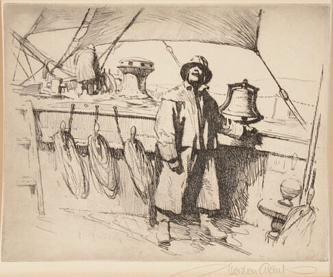 George C. Pearce Watercolor on Paper “Sailing into the Fog”, circa 1937