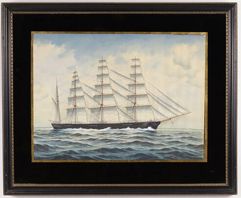Watercolor and Ink on Paper “Portrait of a Clipper Ship”, 19th Century