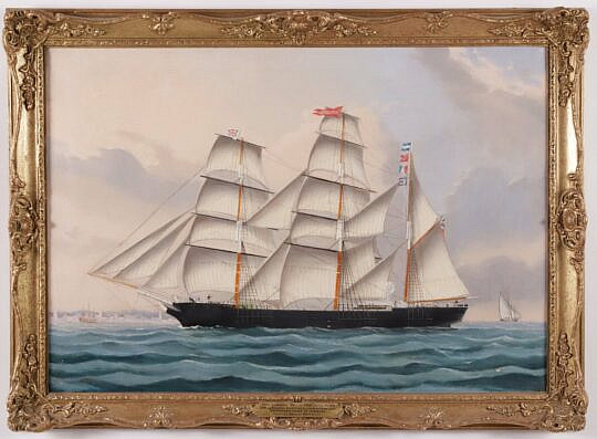 Lewis Renault Oil on Canvas “Portrait of the Barque Palmyra Off Leghorn”, circa 1891
