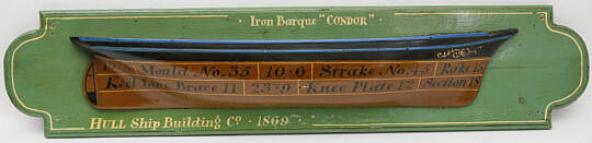 Carved and Painted Wooden Half Hull Model of the Iron Barque, “Condor”