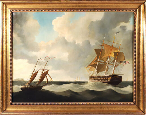 J.V. Capua Oil on Canvas “USS Ohio Off Gibraltar, 1838”, 20th Century