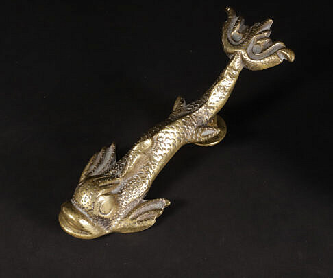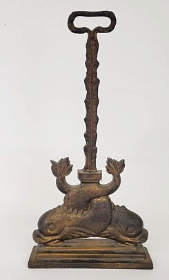 Pair of Antique Bradley and Hubbard Figural Cast Iron Dolphin Andirons, circa 1920