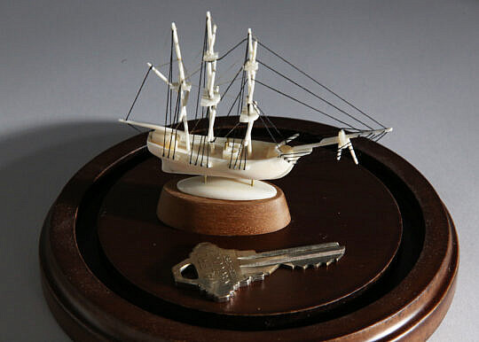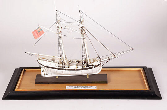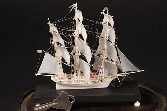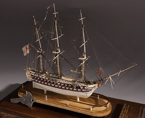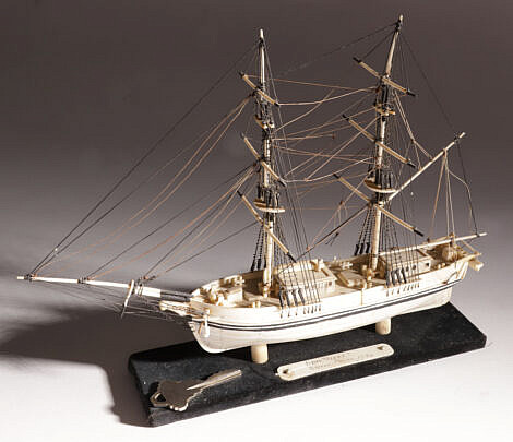 Cased Bone Ship Model of the Brig “H.M.S. Sir Edward Hawke”