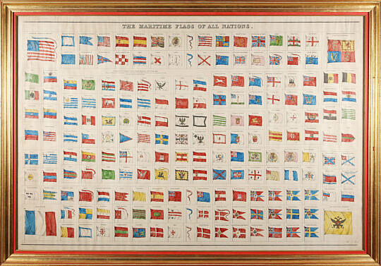 Framed Lithograph “Maritime Flags of All Nations”, circa 1855