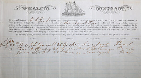 Framed 1864 Whaling Contract from D.L Pearl Shipping Agent Out of New Bedford