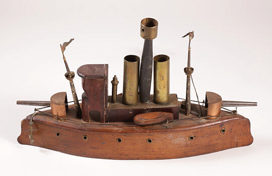 Antique Sailor Made Folk Art Model of Dreadnought Battleship, circa 1900