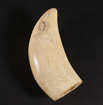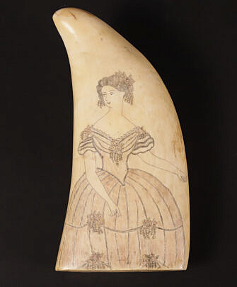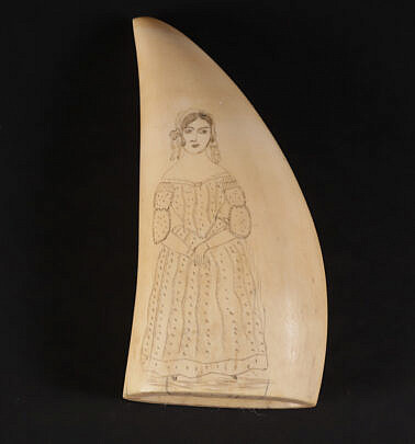 Scrimshaw Fashion Lady Antique Whale Tooth, late 19th Century