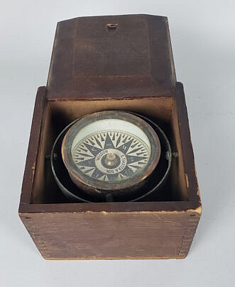 Antique S. Thaxter & Son Boston Nautical Naval Compass, 19th century