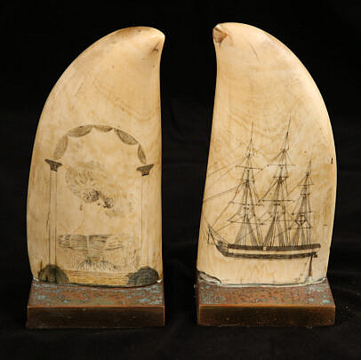 Pair of Antique Whalebone Decorated Whale Inner Ears