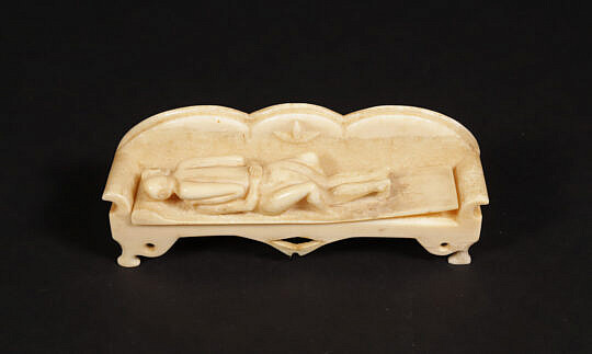 Whaleman Carved Whalebone Miniature Cradle Toy, 19th Century