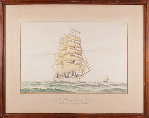 Ramon Aker Watercolor “Portrait of the Ship Hezogin Cecilie 1902-1936”