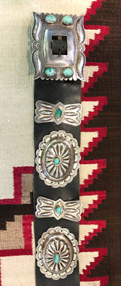 Vintage Large Navajo Sterling Silver and Turquoise Concho Belt