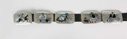 Benson Boyd Zuni Multi-Stone Inlaid “Story Teller” Sterling Silver Concho Belt