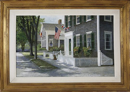 R. Benjamin Jones Acrylic on Panel, “Upper Main Street, Nantucket”