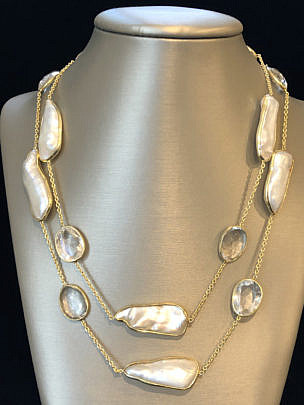 Faceted Clear Quartz and White Fresh Water Baroque Pearl Necklace