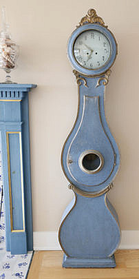 Swedish Gustavian Mora Tall Case Clock in Blue Paint, 19th Century