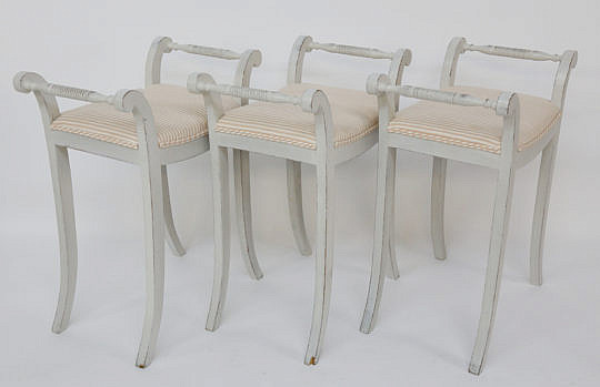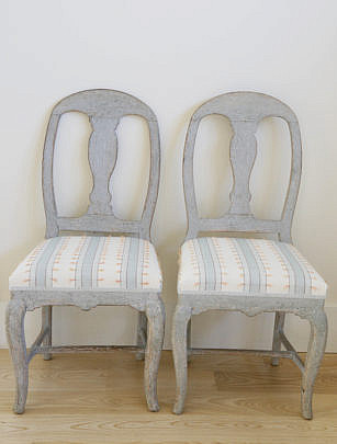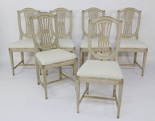 Set of Six Swedish Louis XVI Style Lime Washed Dining Chairs, mid 19th Century