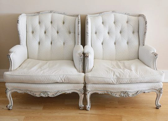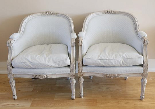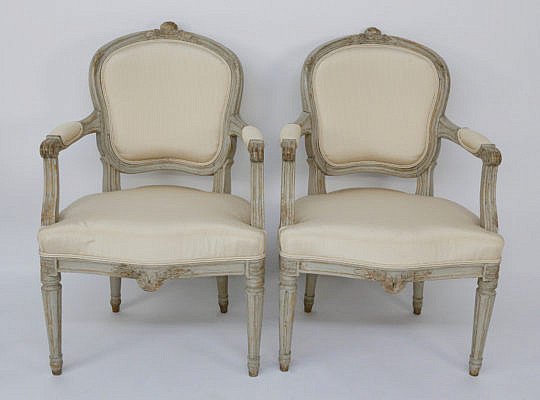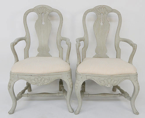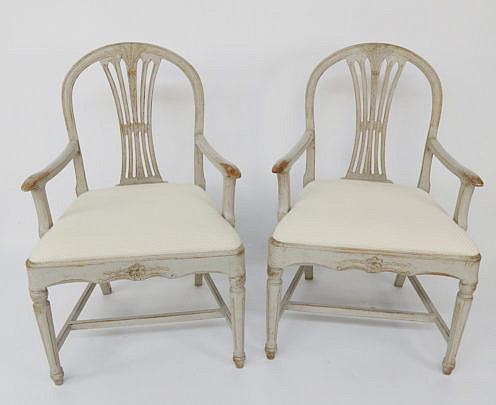 Pair of Swedish Gustavian Style Lime Washed Open Armchairs, circa 1890