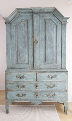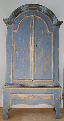 Swedish Gustavian Style Blue Painted Pine Two-Part Dome Top Armoire, 19th Century