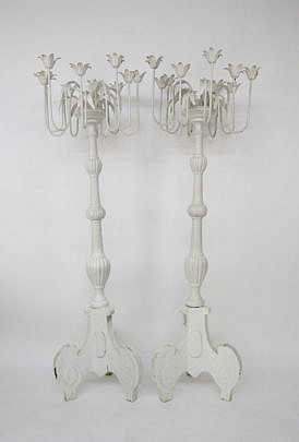 Pair of Scandinavian Decorated Candle Stands, 19th century