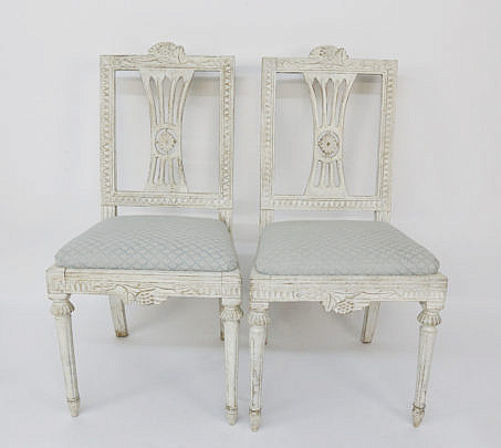 Pair of Swedish Gustavian Style Fiddle Back Side Chairs, 19th Century