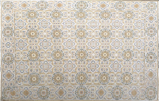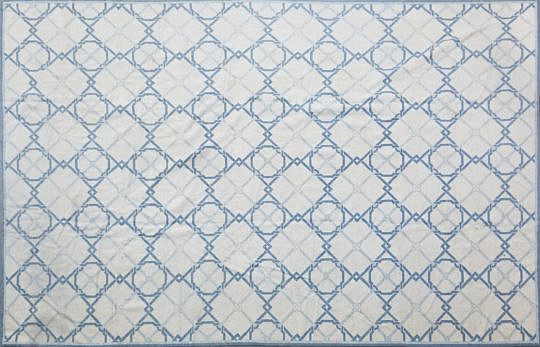 Hand Knotted Wool Blue and White Geometric Needlepoint Carpet