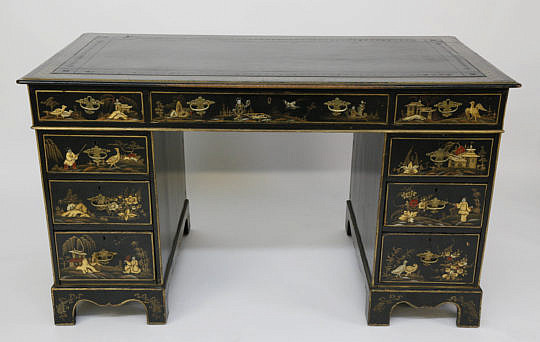Antique Chinoiserie Decorated Kneehole Desk, 19th Century