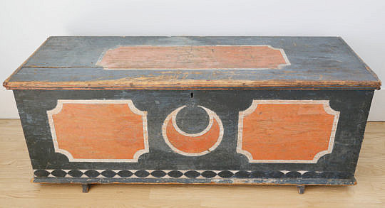 Scandinavian Paint Decorated Dovetailed Pine Blanket Box, 19th Century