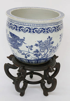 Canton Style Blue and White Porcelain Umbrella Stand
