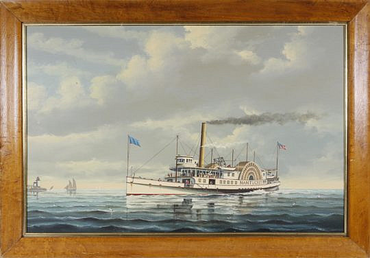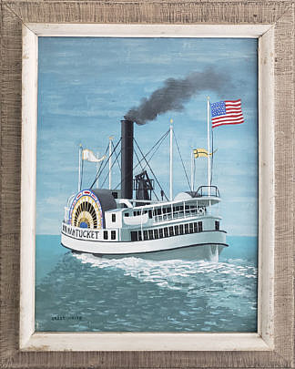 Paul Crosthwaite Tempera on Board, “Nantucket Side-Wheeler”