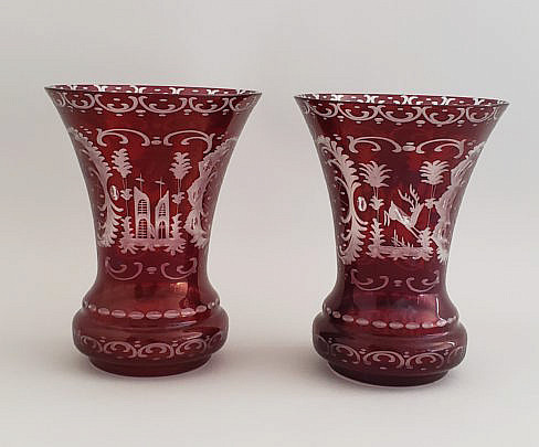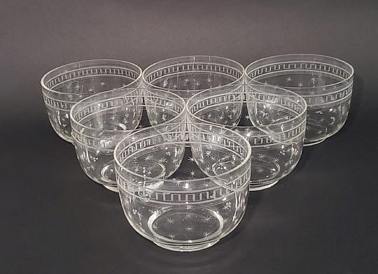 Six Antique Star Etched Crystal Finger Bowls