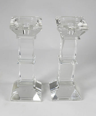 Signed Steuben Clear Crystal Serving Bowl and Compote