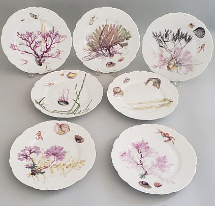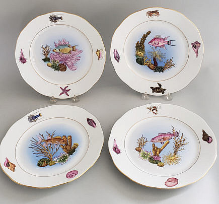 Set of Six Vence Enamel Painted Sea Creature Plates